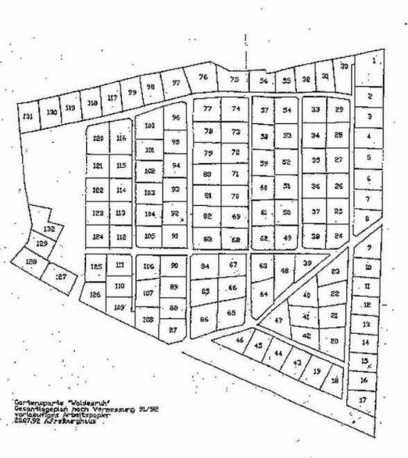 siehe auch den Lageplan der Anlage s.u.; Interessierte können sich auch über unser Kontaktformular (unter: Kontakt) melden bzw. sich direkt an unseren Vorsitzenden wenden vorsitzender@kleingartenverein-waldesruh-hirschfelde-ev.de